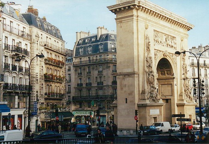 Das ist die "Porte St.-Denis", auf der Grenze zwischen dem 2. und 10. Arrondissement, zwei Minuten vom Apartment entfernt, das hinter Ihnen liegt. Wenn Sie durch den Torbogen gehen, kommen Sie zu einer lebhaften Einkaufstraße mit orientalischen Restaurants und kleinen Läden. Wenn Sie nach links gehen, an einem Postamt vorbei, sind Sie schon auf einem der "Grands Boulevards", der sich kilometerlang weiter zieht, mit großen Kaufhäusern, Cafés und Restaurants. Nach rechts kommt gleich eine Metrostation, der Supermarkt "Monoprix" und der große Buchladen "Gibert Jeune".
